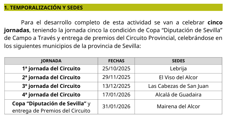 La 4ª jornada del circuito de campo a traves de la diputacion de Sevilla , se celebrara el sabado 17 enero junto al Puente del Dragon de ALCALA DE GUADAIRA.