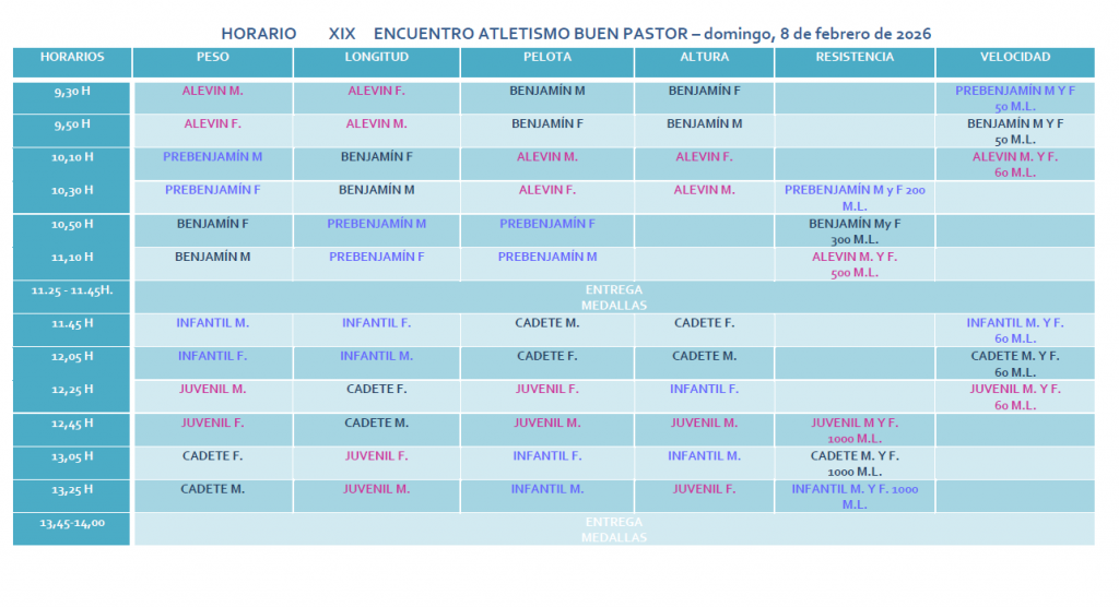 Camagc Atletismo estará presente en el encuentro BUEN PASTOR de atletismo en SAN PABLO con fecha 8 de marzo de 2026.
